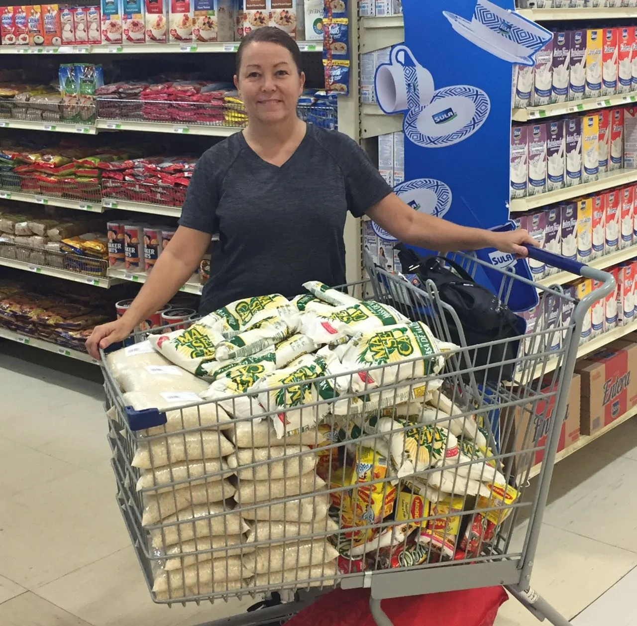 Our founder and missionary, Robyn, buying groceries to fill the back packs